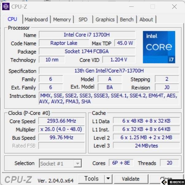 이번에 케이벤치에서 살펴보고 있는 제품은 레노버 리전 슬림 5i 16IRH8 시리즈로, 핵심적인 성능을 판가름하는 CPU는 인텔의 최신 13세대 랩터레이크 CPU, 코어 i7-13700H가 탑재되어 있다.