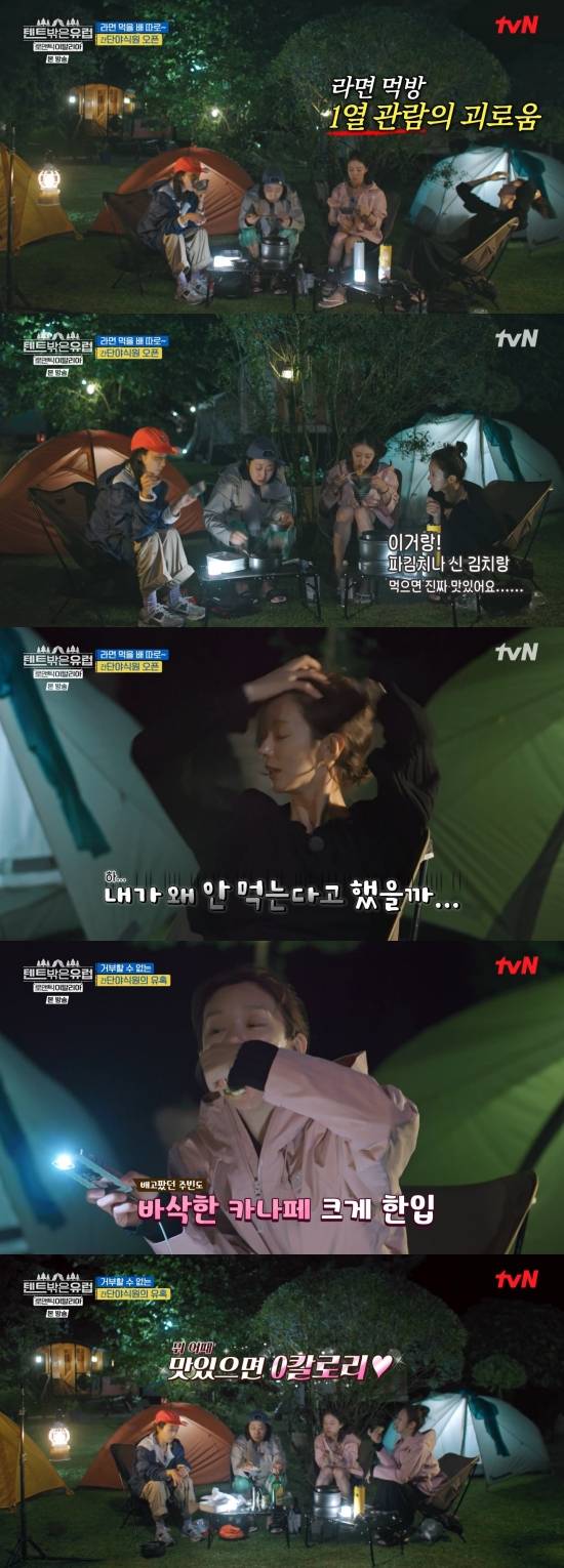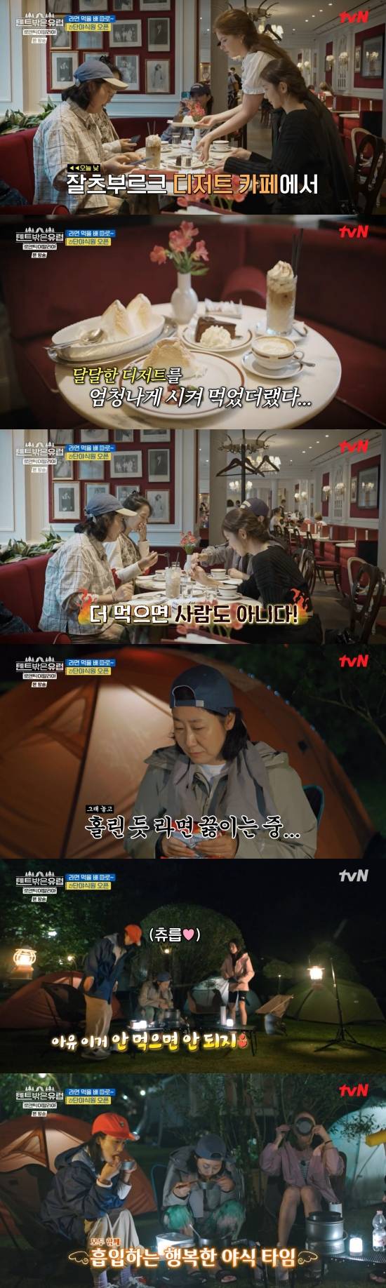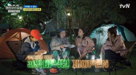 이주빈, 야식 라면 참다 뒤늦은 후회…라미란→이세영과 '카나페 먹방' (텐트 밖은 유럽) [종합]