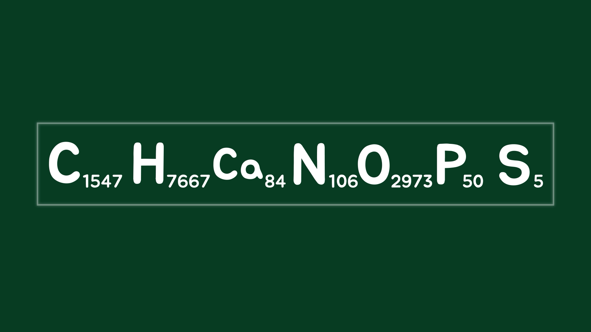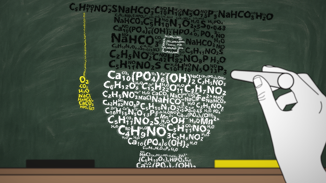 다만, 사람을 구성하는 조직의 주요 성분들을 분자 단위로 나누고, 그 안에 들어있는 원자수를 모두 더해보면 인간을 분자식 형태로 근사한 식을 구할 수는 있습니다. 이번 영상에서는 그 값을 구함으로써 궁금증을 해결해 보려고 합니다.