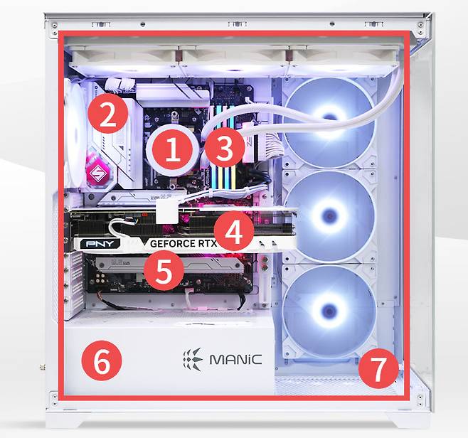 먼저 PC 내부 부품을 크게 일곱 가지로 분류를 했다. 교과서 같은 절대기준은 아니니 안심하자. 다만 발열이되는 정도나 식혀야하는 방법이 다른 것을 기준으로 분류했고, 각자 PC 부품별로 상황이 달라질 수 있음을 명심하자.