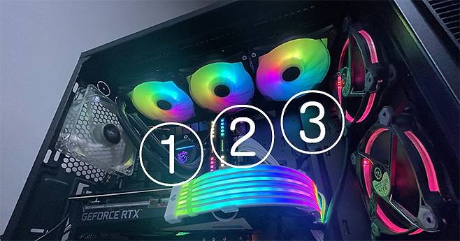 마지막으로 PC 본체를 감싸고 있는 케이스 내부의 열을 빼내야 한다. 각 부품별로 쿨링 솔루션으로 인한 열이 PC 내부 공기를 덥히는 과정이 반복되므로 이 공기를 식히는 게 관건이다. 과정은 의외로 단순하다. 밖의 차가운 공기를 PC 내부에 유입시키고 PC 내부의 뜨거운 공기는 다시 밖으로 빼낸다. 그뿐이다.