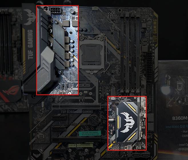 메인보드는 PC 부품 중 표면적이 가장 넓고 구성되는 파트도 다양한 편이다. 따라서 어디에서 열이 발생하는지 체크하는 게 쿨링에 상당한 도움이 된다. 메인보드에서 대표적으로 뜨거운 곳은 바로 전원부다. CPU와 메모리에 전원을 공급하는 부품이 집적되어 있는 곳으로 캐퍼시터가 보통 5개에서 12개 이상 장착된 부분이다. 다행히 메인보드 제조사는 이 부위에 히트싱크를 장착해 열을 식히게 해준다. 그 말은 유저가 별도의 쿨링 솔루션을 구입하지 않아도 된다는 말이다.