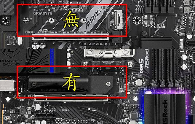 보통 M.2 SSD를 쿨링 하는 수단은 메인보드에 장착된 기본 히트 싱크나 별도 구매하는 히트 싱크 제품이 있다. 이 중 메인보드의 기본 히트싱크는 보통 중고급형 이상 제품에만 제공된다. 보급형 메인보드엔 M.2 SSD가 그대로 전면에 노출될 경우가 많다. 메인보드 기본 히트싱크가 있다면 다행이지만, 없다면 따로 판매하는 M.2 SSD 전용 방열판을 구입하자.