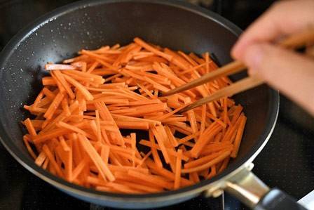 기름과 함께 볶기: 올리브유, 들기름, 참기름 등 식물성 기름에 살짝 볶아 먹으면 베타카로틴 흡수율이 크게 올라간다.