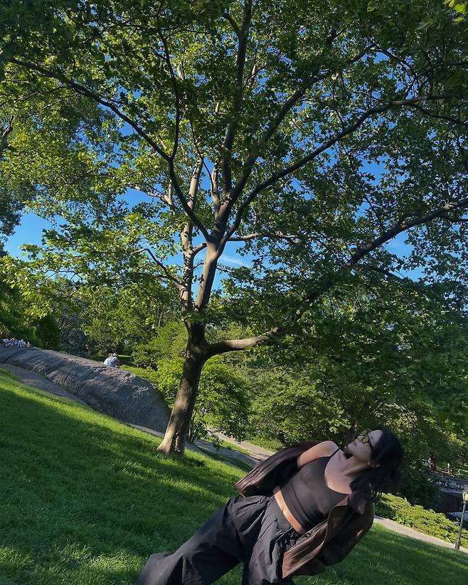 김태리가 보여준 이번 모습은 푸른 나무와 잔디가 펼쳐진 싱그러운 공원을 배경으로 본인만의 시크하고 자유로운 매력을 극대화한 감각적인 차림이에요.
