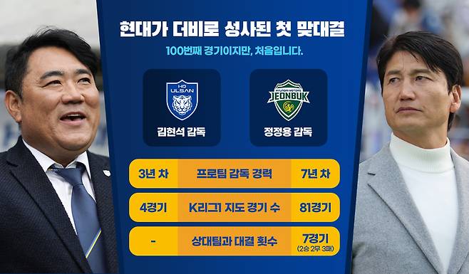 99전 37승 24무 38패의 막상막하 전적 속에서 울산이 역사적인 100번째 맞대결의 마침표를 찍으러 나선다. 5년 내 최상의 기세를 회복한 전북의 야심과 1,490일간 닫혀있던 전주성 승전고를 다시 울리려는 울산의 집념이 정면으로 충돌한다.