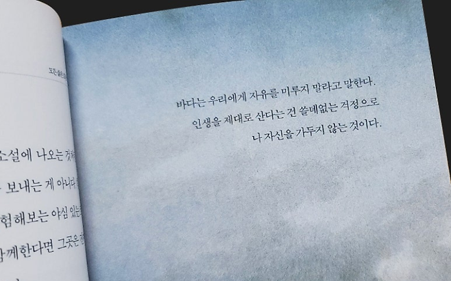 노후를 가장 불행하게 만드는 것은 스스로 마음을 가두는 태도다. 변화가 두렵고, 고집을 내려놓지 못하고, 감정의 흐름을 차단하는 순간 삶은 빠르게 무거워진다. 『모든 삶은 흐른다』에는 “바다는 우리에게 자유를 미루지 말라고 말한다.