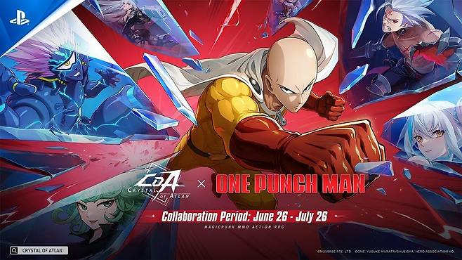 6월 26일 시작하는 새로운 MMO 액션 RPG 아틀란의 크리스탈의 대형 업데이트. 이번 이벤트에서는 다양한 원펀맨 캐릭터가 게임 내 등장하며 한정 콘텐츠와 이펙트 등 다양한 보상도 예정되어 있다. 이날 영상에서는 원펀맨 캐릭터들의 대표적인 필살기 연출과 강렬한 액션이 강조됐다.