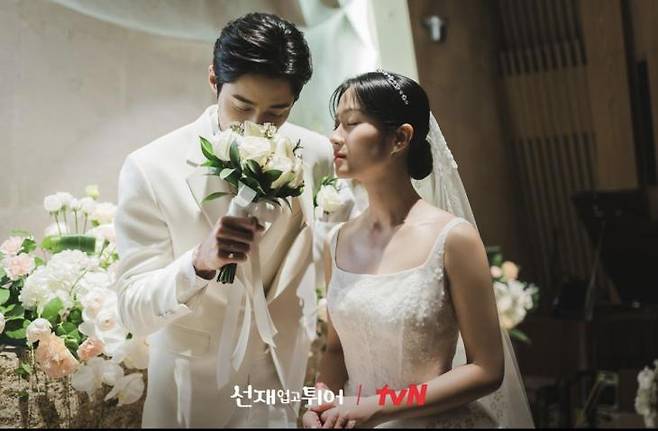 지난해 인기 드라마 '선재 업고 튀어'에서 결혼 엔딩을 맞이했던 변우석, 김혜윤이 최근 나란히 인기상을 수상하며 여전히 뜨거운 인기를 자랑했습니다.