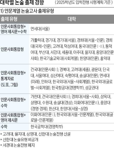 인문, 인문사회통합형 기본…연대는 영어·수학도
