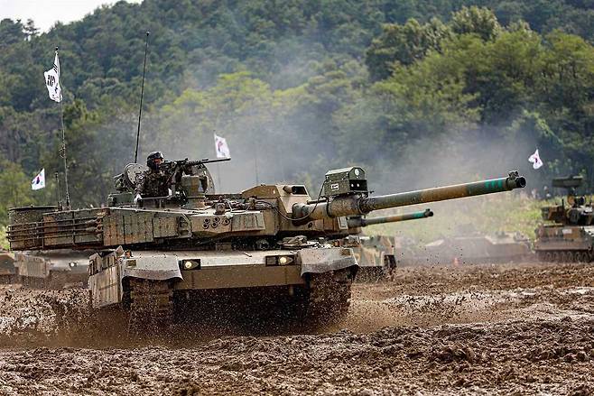 K2 흑표는 120mm 55구경장 주포와 자동 장전 시스템, 신형 사격통제장치를 탑재한 3.5세대 최상위 전차다. 기동력·화력·방어력의 균형이 뛰어나 폴란드에 20조 원 규모 수출에 성공했으며, 국산화율 90%로 가격 경쟁력까지 갖췄다. 미국 M1A2 에이브람스나 독일 레오파르트2가 65~70톤인 데 비해 K2는 56~60톤에 불과해 상대적으로 가볍고 날렵하다.