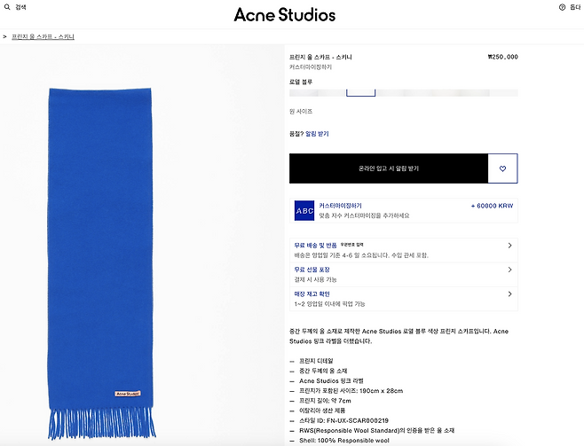 수지 님의 팬이거나 적당한 가격대의 머플러를 찾고 있다면 아크네 스튜디오 머플러를 참고해 보세요.