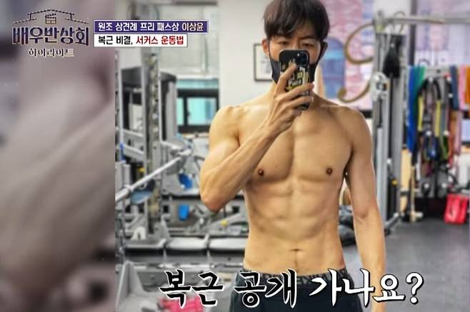 배우 이상윤이 운동으로 만든 복근을 공개했다.