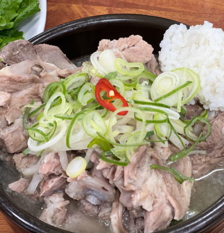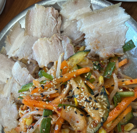 기름진 돼지고기와 새콤한 무침이 함께 나와국물과 같이 먹으면 밸런스가 좋습니다