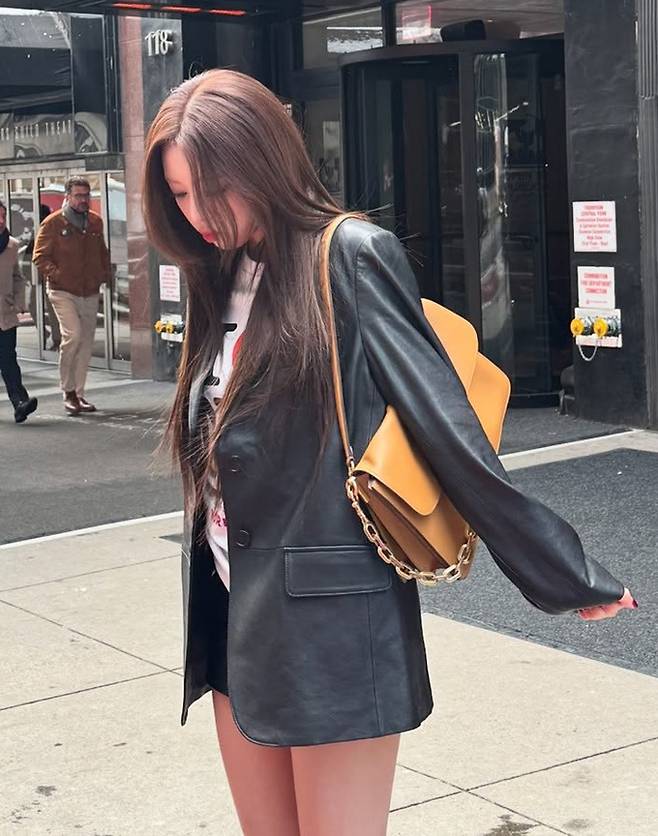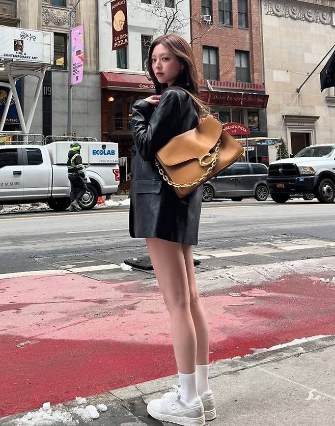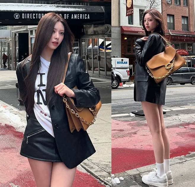 그룹 있지 있지(ITZY) 유나가 하의실종 레더룩으로 뉴욕 거리의 잇걸로 거듭났다.