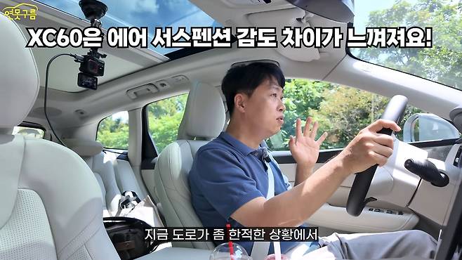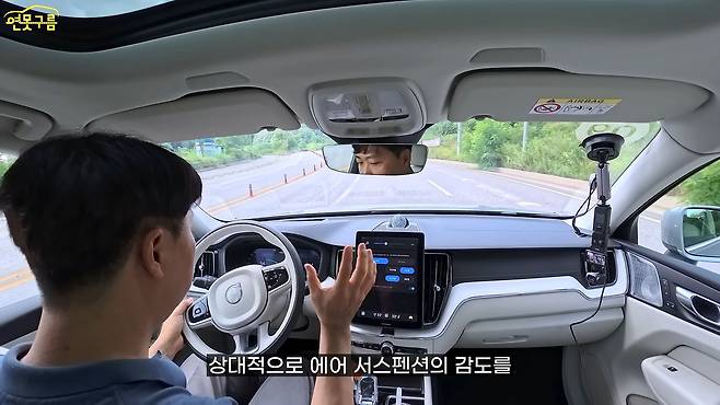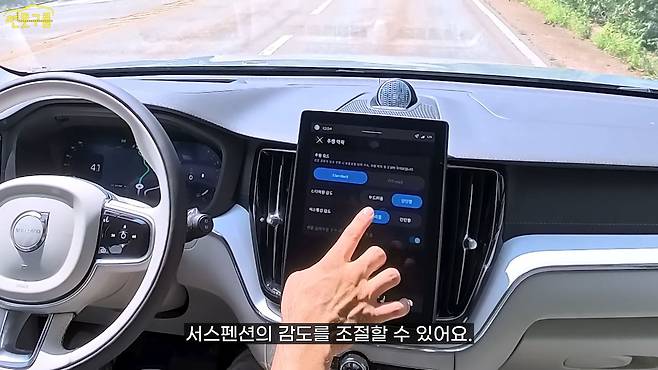 그래서 XC90에 적용된 에어 서스펜션보다는 XC60에 적용된 에어 서스펜션이 좀 더 많은 역할을 하고 있다는 느낌을 받았습니다. 이런 차이점은 인포테인먼트의 주행 모드에 들어가시면 서스펜션의 감도를 조절할 수 있습니다. 부드러움과 단단함을 설정할 수 있는데, XC60에서는 이 느낌이 확실히 전달되는 것을 경험할 수 있습니다.