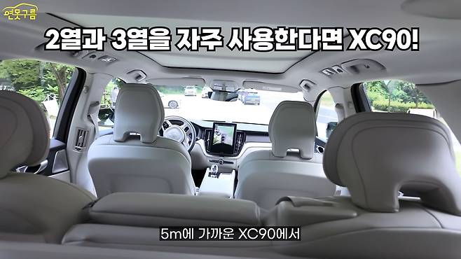 2열과 3열 공간을 꼼꼼하게 따져보면 적어도 1열 공간, 즉 운전자 앞에서 펼쳐진 공간은 XC60과 XC90의 차이점이 많이 줄어들 수 있습니다. 하지만 2열은 XC90 쪽이 시트 크기가 좀 더 큽니다. 5m에 가까운 XC90의 2열 시트가 좁았습니까, 하고 생각하실 분들도 계실 텐데요.