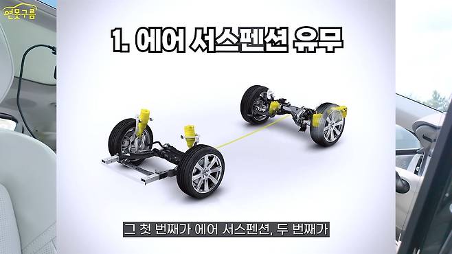이 차이점만으로도 따져보면 에어 서스펜션, 오디오 시스템, 마사지 기능이 들어간 통풍 시트, 그리고 휠 사이즈 이 4가지 차이점을 포함해서 약 730만 원의 차이가 나는 것이죠. 사실 지금 말씀드린 것이 고급차의 기준이라고 할 수 있습니다. 특히 국내 제네시스 차량은 다양한 라인업을 가지고 있지만, 세단인 G90 플래그십 하나만 에어 서스펜션을 제공하고 있습니다.