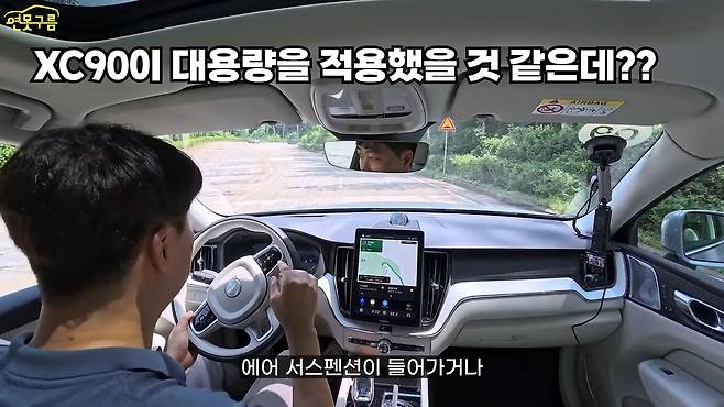 차가 서 있을 때 앞쪽으로 눌리는 현상을 전자제어 서스펜션, 즉 에어 서스펜션이 단단하게 잡아주는 것입니다. 그런데 XC60과 XC90이 이 부분에서 좀 다르게 느껴졌습니다. XC90이 좀 더 대용량 에어 서스펜션이 들어가거나 에어 스프링의 용량이 더 높아야 할 것 같다는 생각이 들었지만, 체감되는 부분에서는 별 차이가 없었습니다.