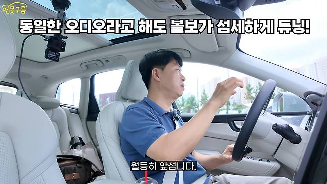 이 섬세함은 중고역에서 해상력이 좀 더 뛰어나다는 느낌과 함께 저역의 밀도가 매우 훌륭합니다. 저역의 양이 아니라 밀도 자체가 확실히 볼보 쪽이 더 괜찮은 느낌을 줍니다. 그렇다면 에어 서스펜션과 고급 오디오 시스템, 이 두 가지가 XC60과 XC90에서 완전히 동일하다는 말씀을 드렸죠.