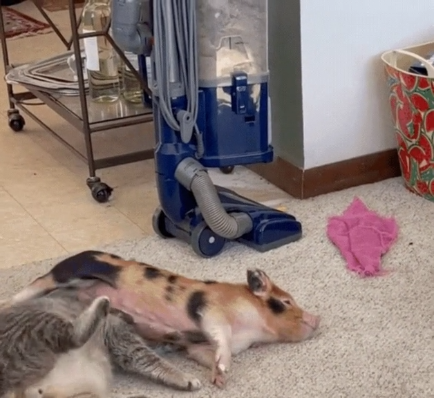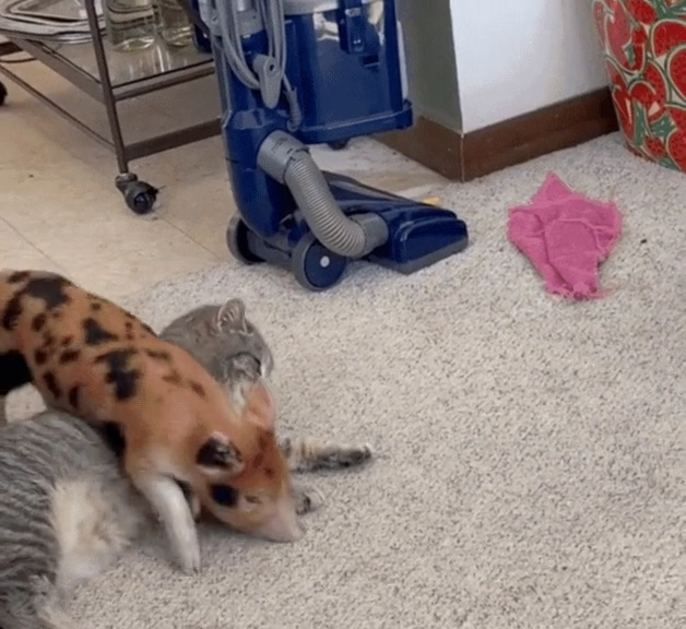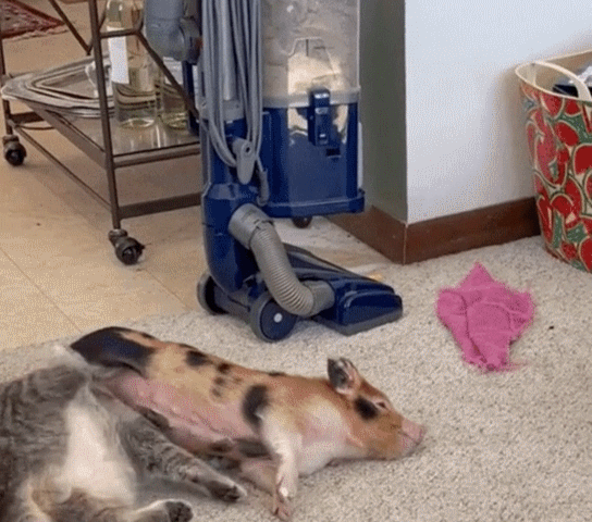 보통의 반려동물이라면 적당한 거리를 두었겠지만, 이 아기 돼지의 선택은 남달랐습니다.