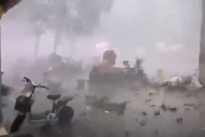 중국 본토에서 홍콩으로 기념으로 보냈던 조형물마저 화단을 벗어나 길거리로 날아가며 그 위력을 보여줬습니다.