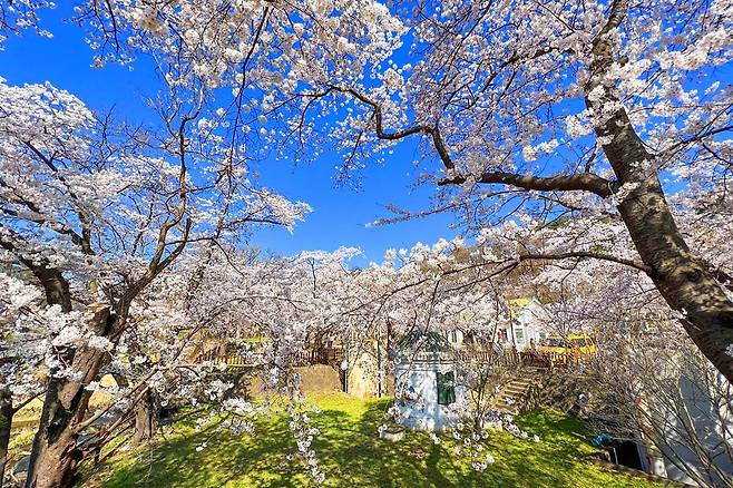 낮에는 햇살 아래 벚꽃잎이 반짝이고, 밤에는 조명이 더해져 환상적인 분위기를 자아내며 이국적인 풍경을 선사합니다.