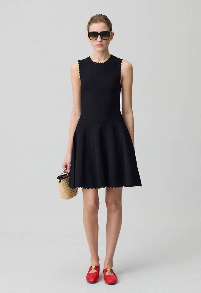 프렌치 컨템포러리 브랜드 '끌로디 피에로(CLAUDIE PIERLOT)'의 레이스 디테일의 파인 니트 플레어 원피스는 몸에 꼭 맞는 핏으로 밑으로 갈수록 퍼지는 플레어 디테일로 페미닌한 무드를 연출한다.