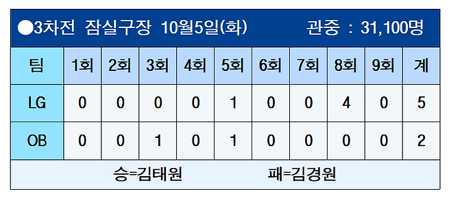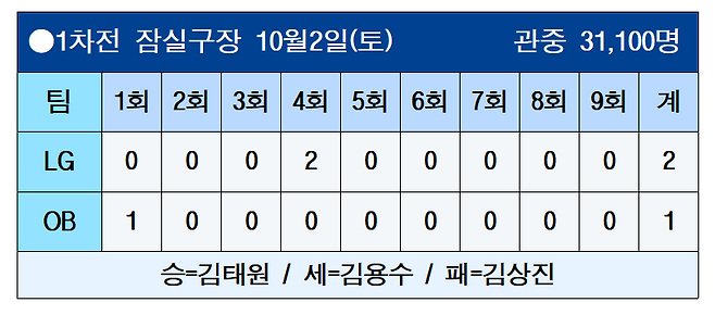 결국 LG가 1차전을 2-1 승리로 장식했다.