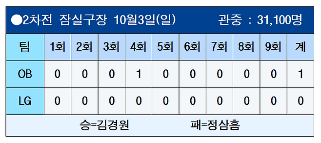 ◆2차전…김경원에 눌린 LG, 0-1 패배로 1승1패 원점
