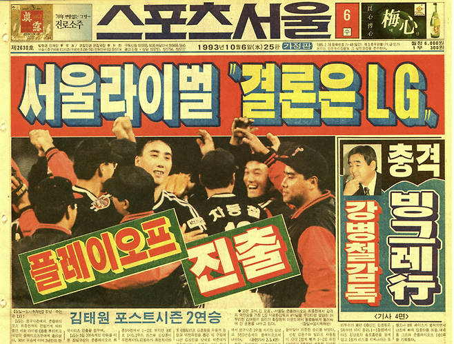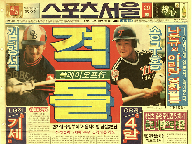 1993년 가을. LG 트윈스와 OB 베어스가 준플레이오프에서 격돌하게 됐다. OB는 페넌트레이스 막판 상승세로 3위로 마감했고, LG는 줄곧 2위를 달리며 1위까지 넘보다 결국 4위로 주저앉았다.
