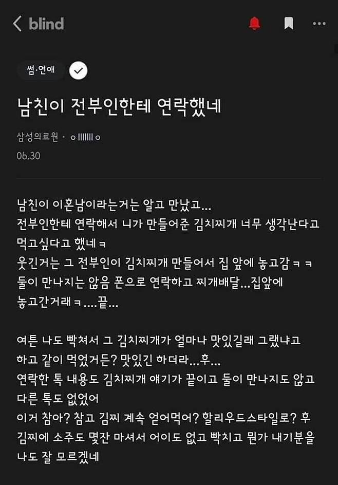 전 부인한테 김치찌개 먹고 싶다고 연락한 남친
