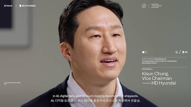 다보스 프롬나드 거리에 마련된 팔란티어 부스에서 소개된 이 영상은 정기선 수석부회장을 비롯한 HD현대 구성원들의 인터뷰를 통해 FOS 프로젝트를 소개하고, 팔란티어와의 협력을 포함한 첨단 디지털 기술이 미래의 조선소를 어떤 모습으로 탈바꿈시킬 지에 대한 비전을 제시했다.