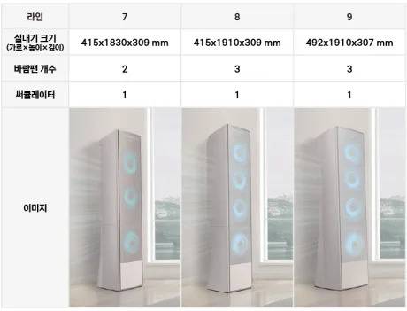 Q9000, 무풍 슬림, 무풍 클래식, 무풍 갤러리 4가지 라인으로 나뉩니다.