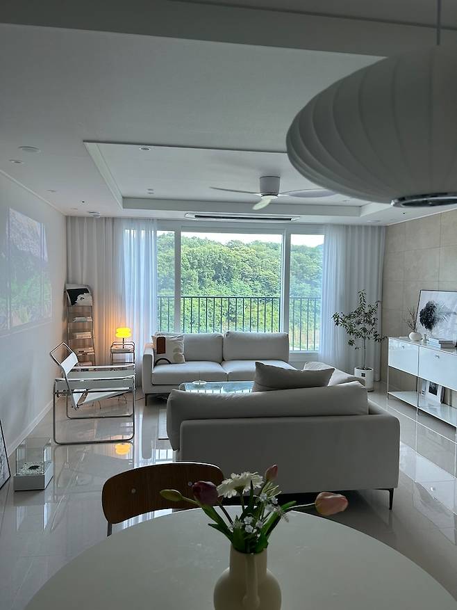 여러분 같은 대리석 바닥인데 정말 훨씬 밝고 고급져 보이지 않나요? 사전 점검 때는 눈에도 안 들어오던 뷰가 이제야 들어오는 거 있죠? 요즘은 저희 집이 뷰 맛집이 되었답니다.^^