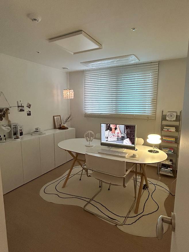 서재방 바닥도 원래는 마루였는데요. 서재를 올 화이트로 꾸미고 싶어서 매트를 알아보니 너무 비싸더라구요, 그래서 비교적 저렴한 데코 타일을 셀프 시공하였답니다.