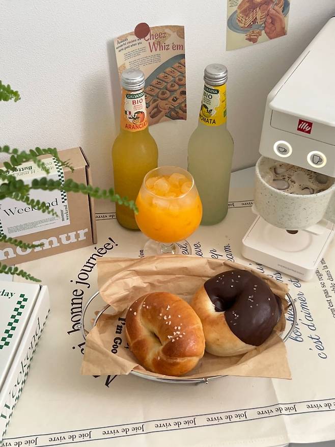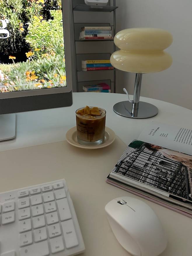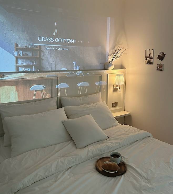 최근에는 침대 옆 수납장을 하나 더 마련했어요. 침대에서도 홈카페를 즐길 수 있어서 좋아요.