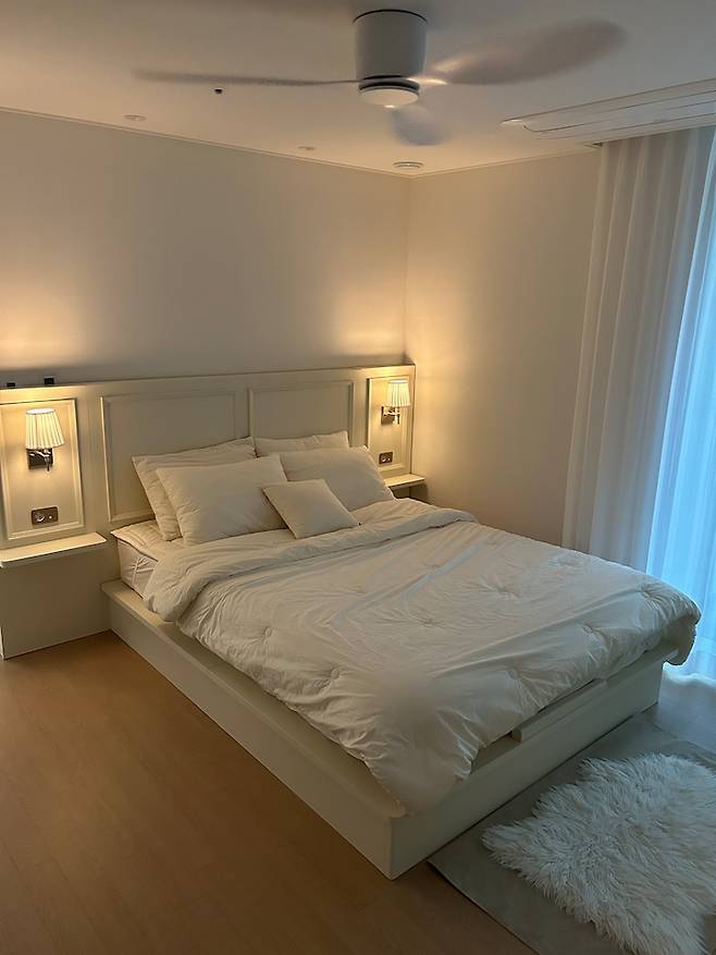 그래서 안방 드레스장 도어도 화이트로 필름지 작업을 해주었고, 호텔식 침대는 아쉽지만 반대편에 두었답니다.