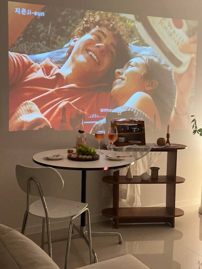 그리고 그 앞에는 작은 테이블을 두어 홈카페를 완성시켜주었어요.