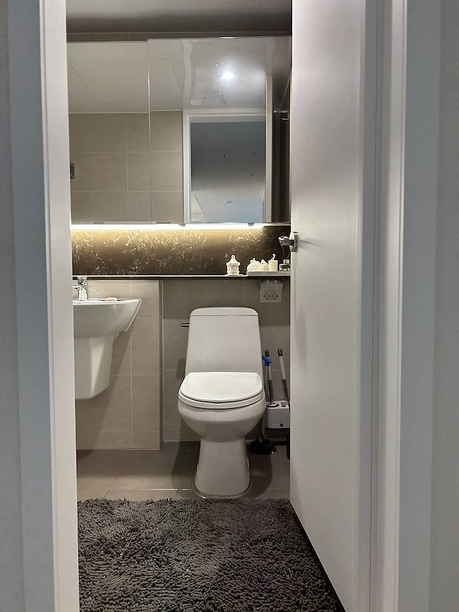 그리고 저는 안방 욕실과 공용 욕실 모두 매트를 깔아 건식으로 사용하고 있어요. 건식으로 사용하면 불편하지 않냐고 많이들 물어보시는데요, 저는 오히려 건식으로 사용하는 게 욕실을 더 깨끗하게 사용할 수 있고 곰팡이와 물 때도 덜 생기는 것 같아 건식 완전 추천해요.