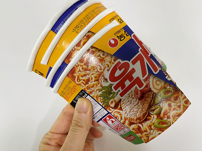 컵라면 용기는 부피가 크고 두꺼워서 쓰레기통에 넣으면 꽤 자리를 많이 잡아먹더군요. 단단하고 두꺼워서 손으로 구겨서 버리기도 쉽지 않습니다.