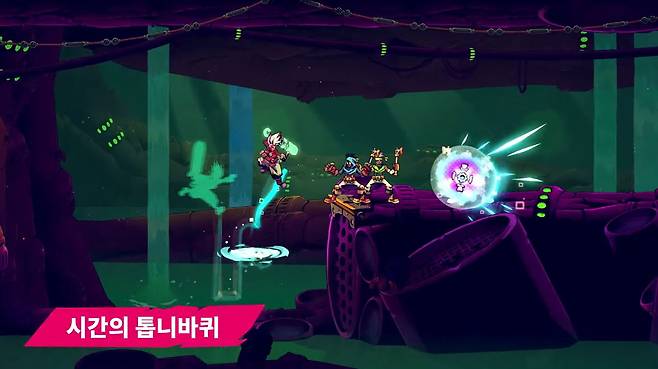 장르는 보편적인 2D 액션 플랫포머지만, 시간을 조종하는 에코의 능력을 활용한 기술이 독특한 장치로 활용됩니다. 시간 조종 장치 ‘제로 드라이브’를 활용해 파쿠르 스타일의 전투를 경험할 수 있죠. 게임 소개 영상에서는 에코가 시간을 조종해 몇 초 전 있었던 위치로 다시 이동하거나, 했던 액션을 돌리는 등의 연출을 확인할 수 있습니다.