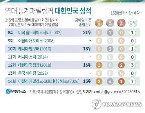 (서울=연합뉴스) 이재윤 기자 = 전 세계 장애인 동계 스포츠 선수들의 축제 2026 밀라노·코르티나담페초 동계 패럴림픽이 10일간의 뜨거웠던 열전을 뒤로하고 대단원의 막을 내렸다.