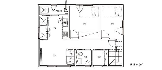 구조 : 기초 – 철근콘크리트 매트기초 / 지상 – 경량목구조 외벽 2×6 구조목+내벽 S.P.F 구조목 / 지붕 – 2×8 구조목