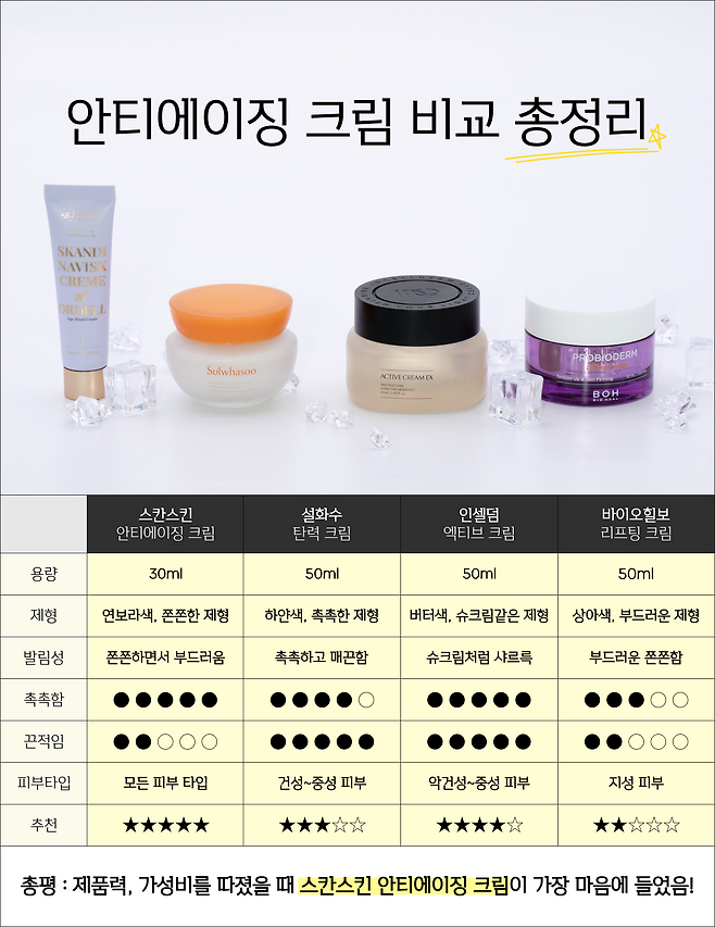 총 4가지의 안티에이징 크림!