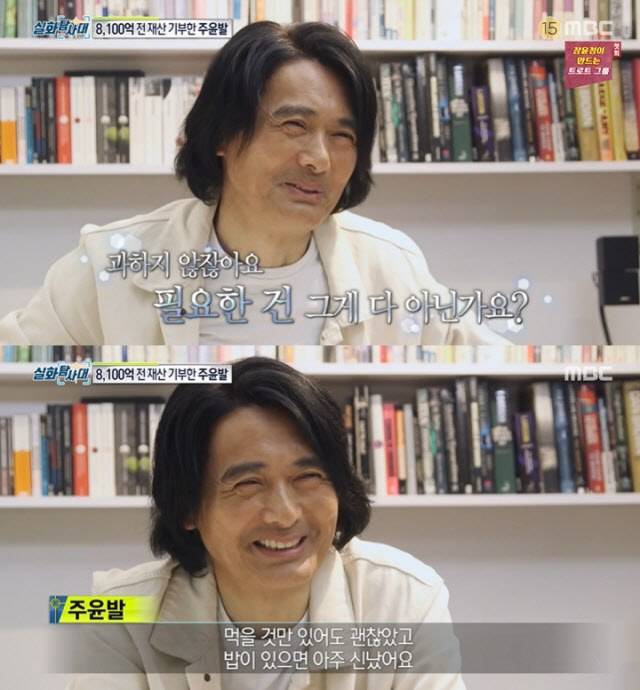 주윤발은 “그 돈은 잠깐 내게 있었을 뿐, 세상에 올 때 아무것도 가지고 오지 않았으니 갈 때도 빈손이어도 괜찮다”며