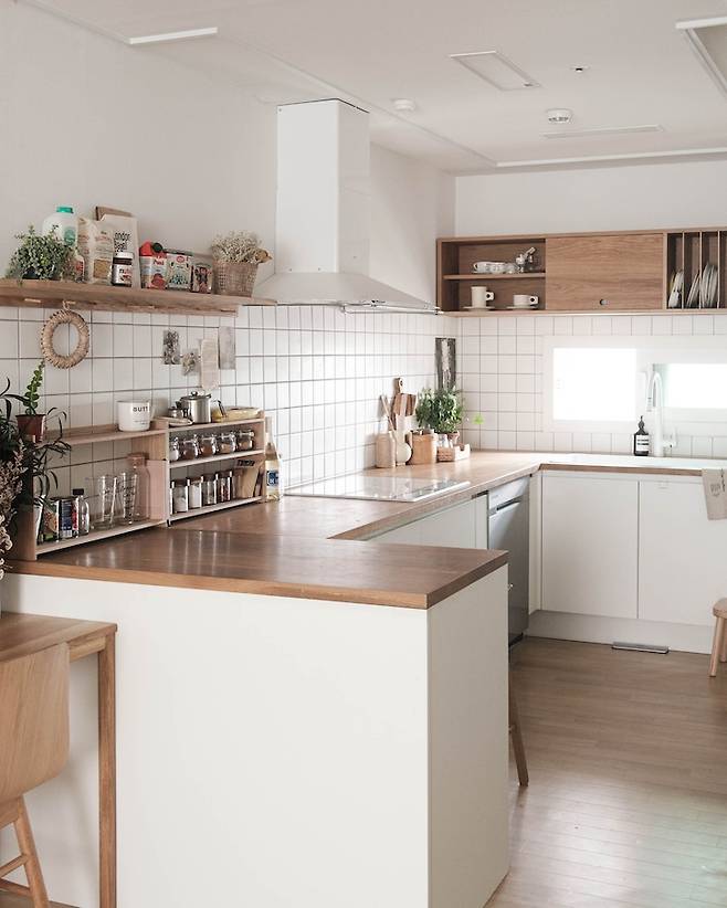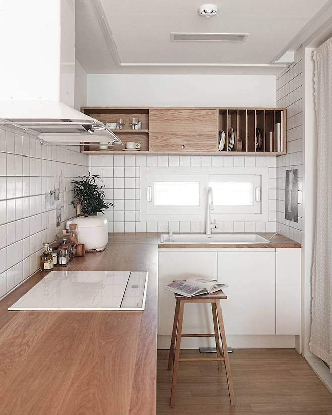 ''언젠간 해보고 말 테야' 우드 상판 로망을 실현한 주방