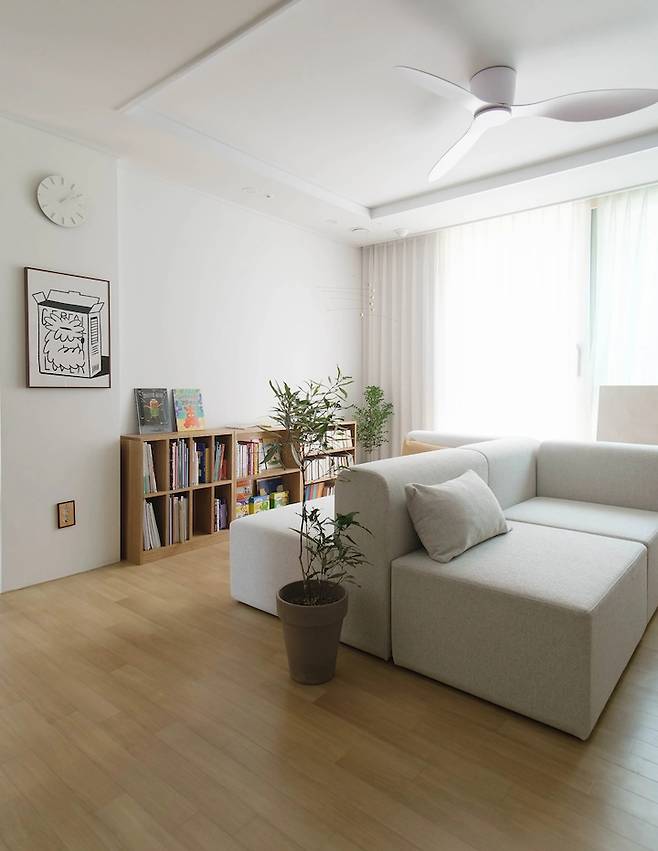 책장과 화분을 거실 가운데 두어 북 카페 느낌을 내 본 날입니다. 소파 어디에 앉더라도 손 닿는 곳에 책이 있어 아이들이 책을 더 자주 펼쳐봅니다. 소파 하나씩 아이들이 차지하고 놀기도 해요.