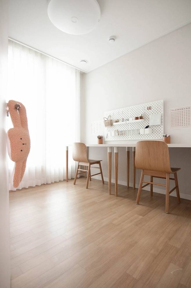 그런데 문제는 아이의 책상을 거실로 가지고 나오라더군요. 경악을 금치 못했습니다. '저 큰 책상이 거실로 나온다고?', '아이의 수만큼 놓아주라고?'
