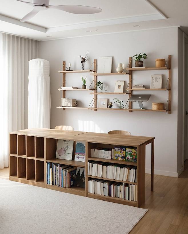 배려 없는 크기와 디자인의 책상이 저의 집 인테리어를 망치는 모습을 볼 수는 없었어요. '공부만' 할 수 있는 공간이 아니라, '공부도' 할 수 있는 공간을 만들고 싶었습니다.